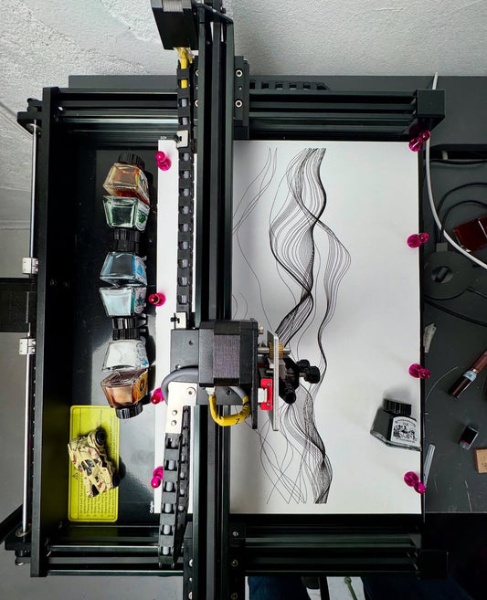 I use this machine to create fast, razor-sharp line-art portraits with a Lamy pen, and the speed and accuracy are impressive. For me, this machine feels like a perfect extension of my studio. It translates digital intention into tactile and expressive drawings. A brilliant bridge between my art and ink.